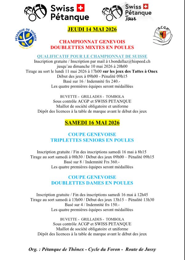 1 Jeudi, Championnat Genevois doublettes mixtes